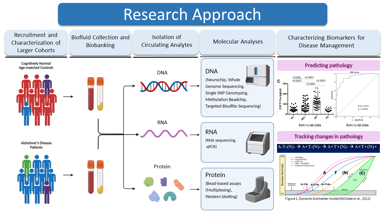 The Bekris lab focuses on identifying specific biomarker signatures that tease apart the heterogeneous nature of early pre-symptomatic disease for: